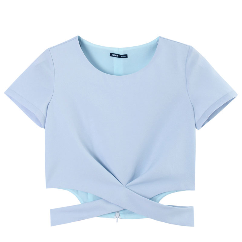 商品名称:韩都衣舍2017韩版女装夏装新款纯色镂空露腰短袖T恤OU7163堯 韩版版型 时尚镂空 舒适面料 个性穿搭